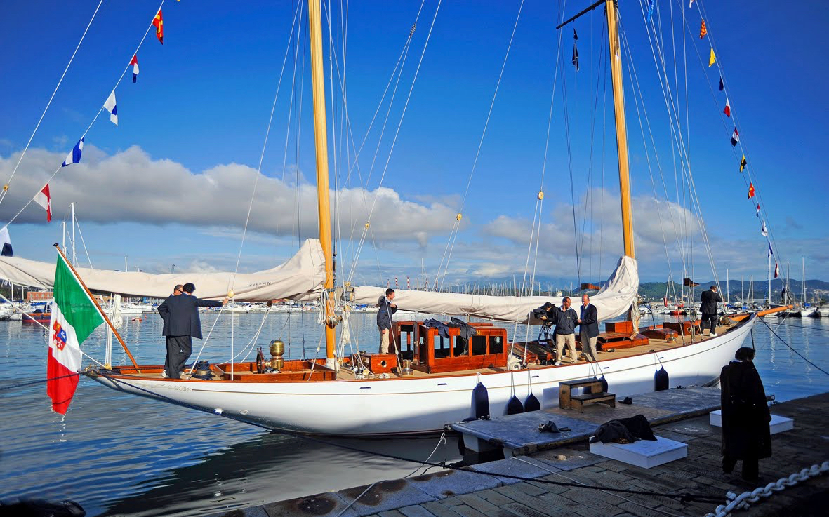 Il 15 metri stazza internazionale entra quindi nel Cantiere Francesco Del Carlo, dove sulla base dei disegni originali ritrovati al Det Norske Veritas ad Oslo, viene totalmente restaurata e riportata alle fastose origini, dopo tre anni di intensi lavori.