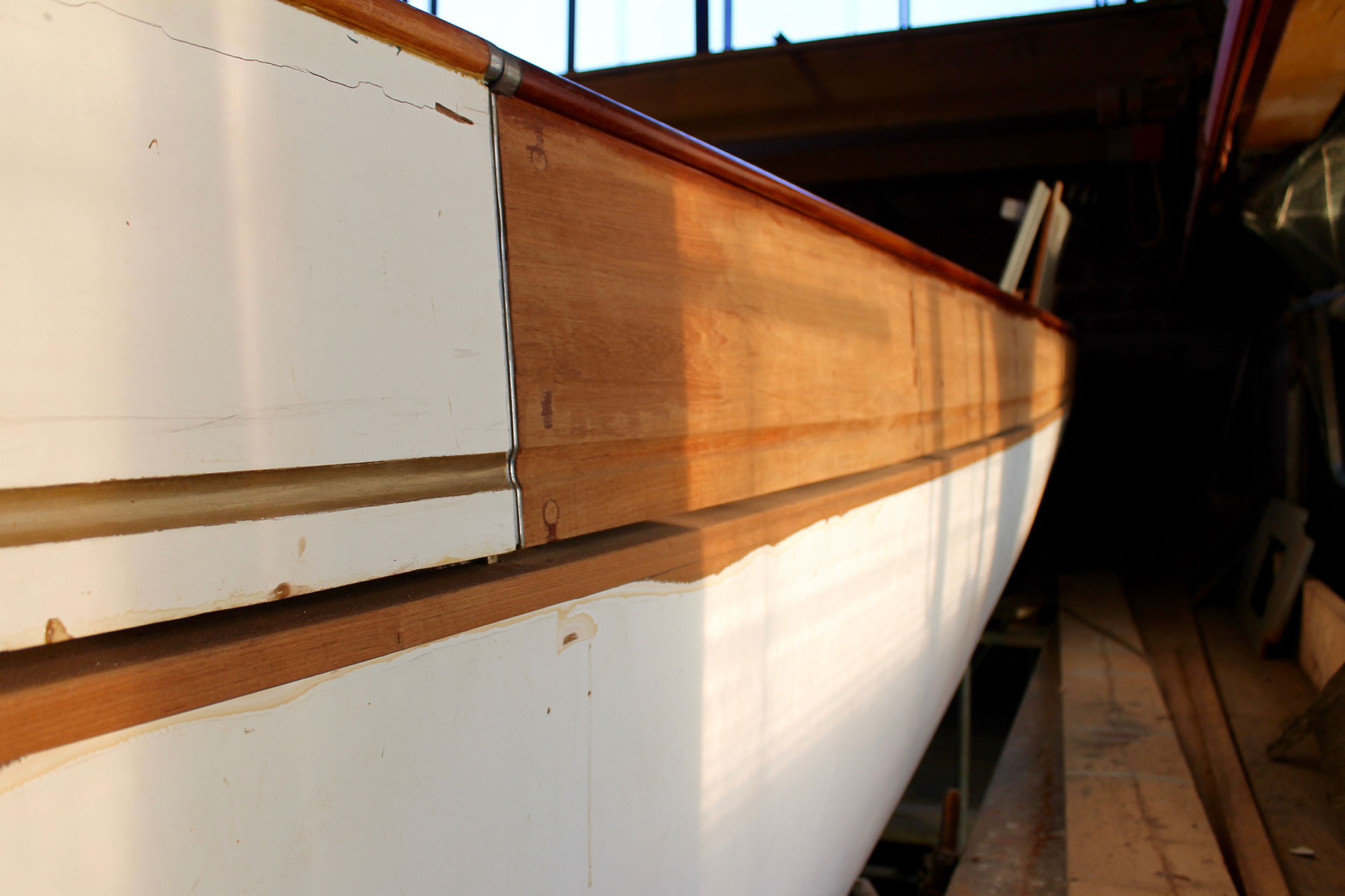 A completamento dell’opera, viene effettuata la sostituzione di alcune tavole di vecchio fasciame di Oregon Pine, che era rimasto intatto negli anni.